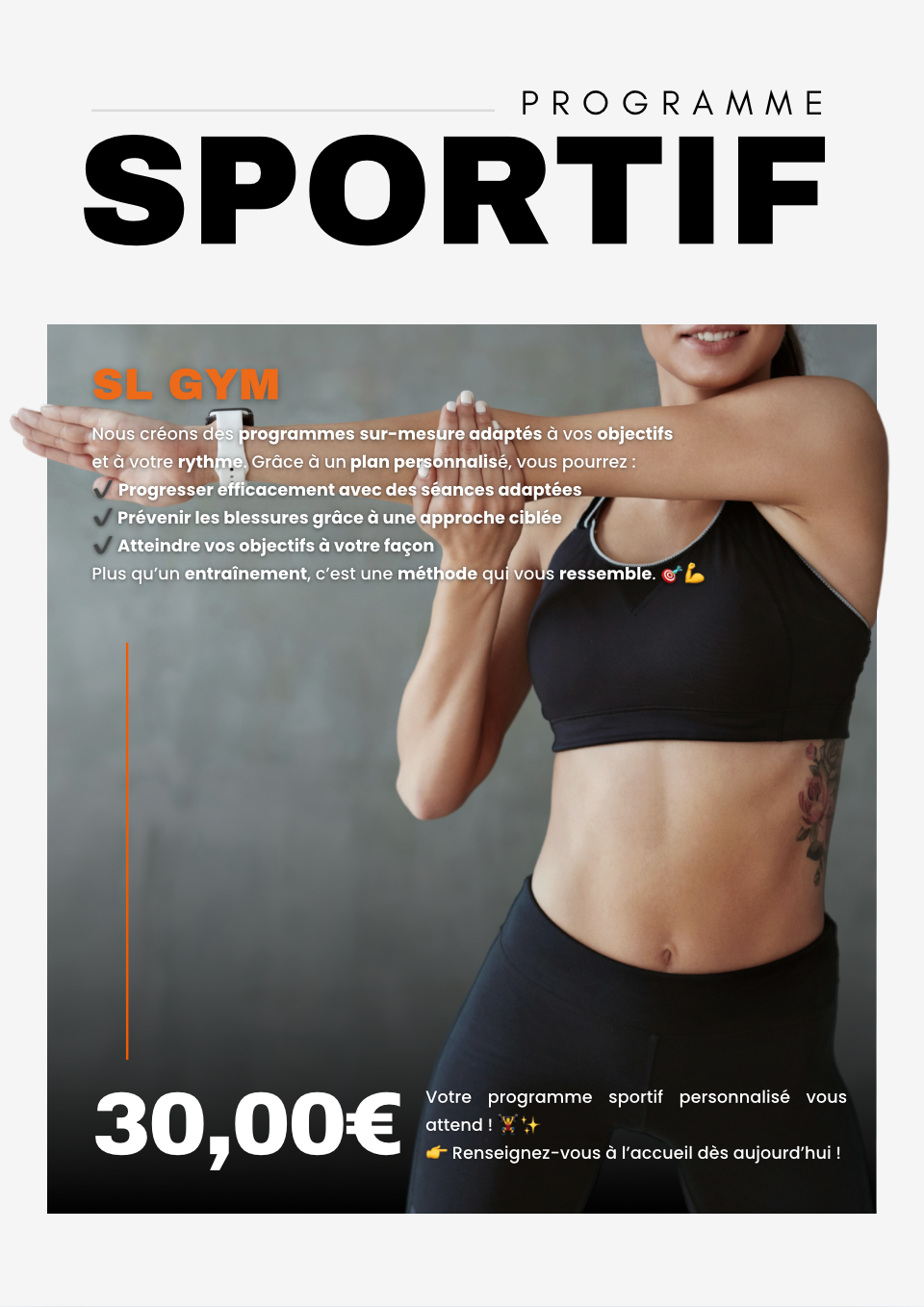 Chez SL GYM, on mise sur le vrai, le concret et la progression à ton rythme. Une salle de sport conviviale, un esprit familial et un encadrement motivant pour t’aider à atteindre tes objectifs. Que tu sois débutant, confirmé ou simplement en quête de bien-être, SL GYM t’accueille dans un espace pensé pour tous les profils : - Musculation & renforcement - Cardio training - Programmes personnalisés - Accompagnement et conseils. SL GYM, c’est aussi une communauté qui avance ensemble, avec de la bienveillance, du respect… et une bonne dose d’énergie.